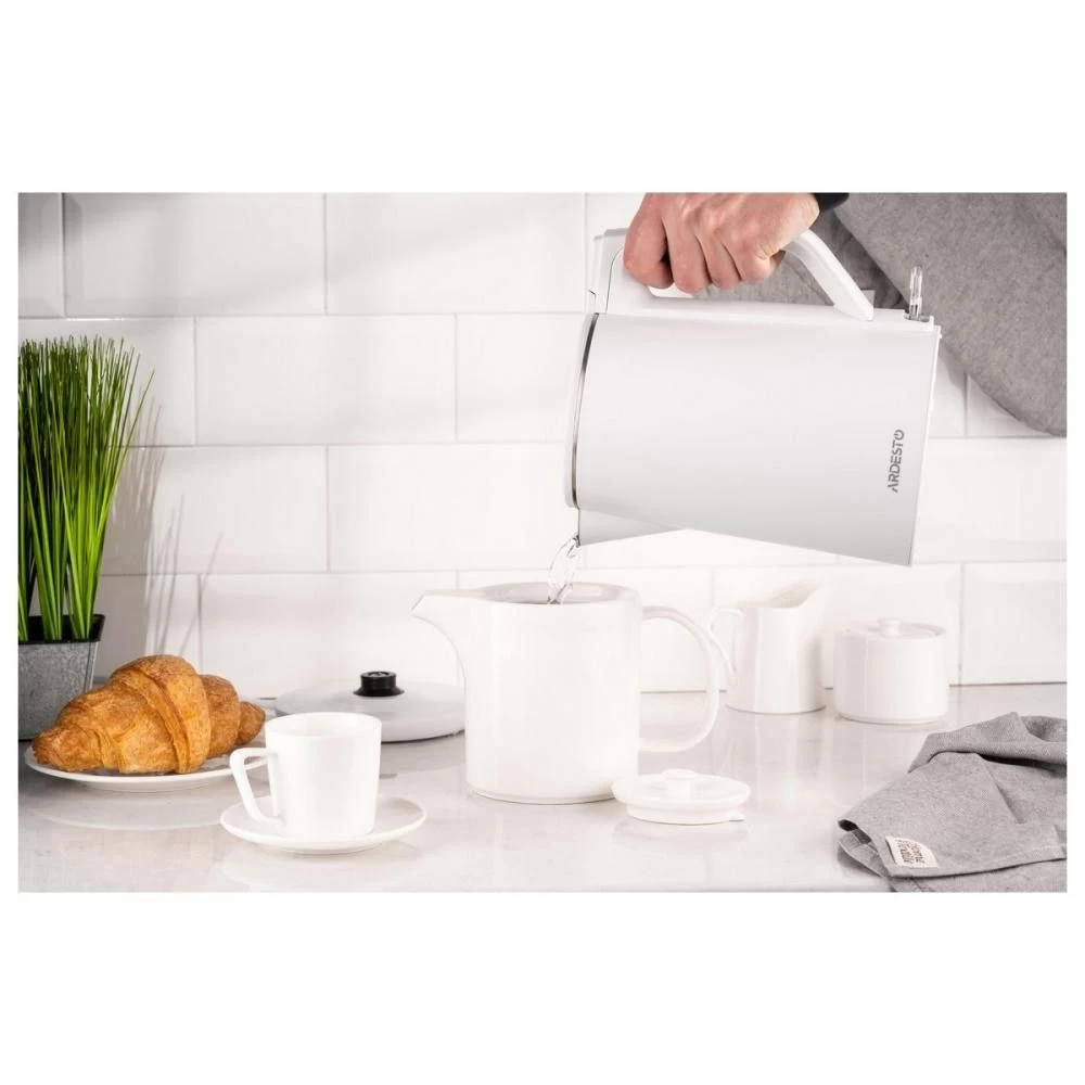 Бренд: Ardesto; Мощность, Вт: 1850-2200; Объем, л: 1,7; Тип нагревательного элемента: дисковый (скрытый); Материал корпуса: нержавеющая сталь/ пластик; Цвет: белый; Фильтр от накипи: нет; Угольный фильтр: нет; Индикатор уровня воды: нет; Индикатор включения: есть
