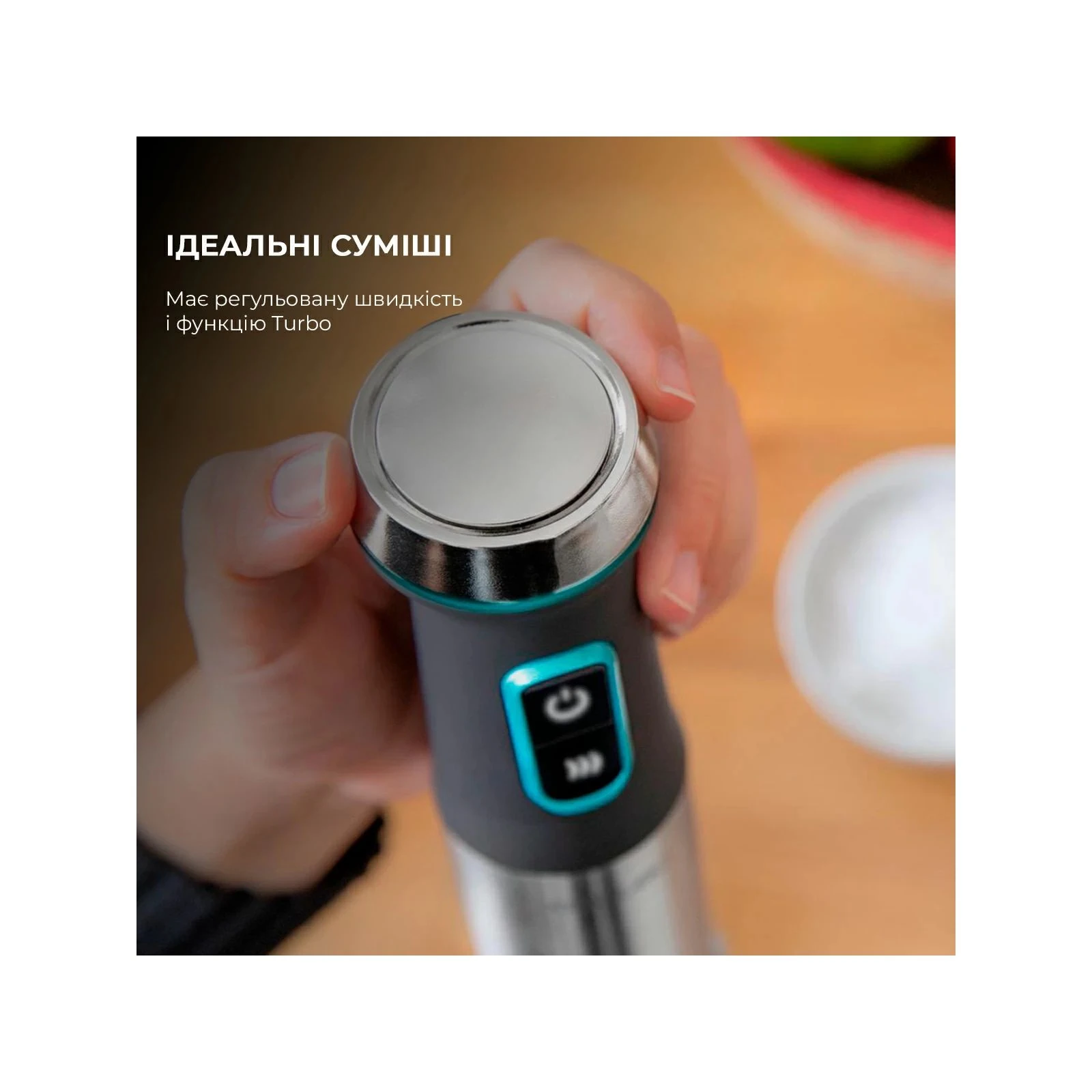 Тип: погружной; Мощность: 1200 Вт; Емкость мерного стакана: 0.8 л; Измельчитель: с измельчителем; Емкость мини-измельчителя: 600 мл; Насадки и ножи: нож для измельчения, насадка-венчик, насадка-блендер; Дополнительные емкости: мерный стакан , чоппер; Количество скоростей: 3; Материал ножки блендера: металл; Функции: турборежим, колка льда