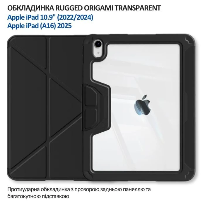 Чехол для планшета BeCover Rugged Origami Transparent Apple iPad 10.9" (2022/2024) / iPad (A16) 2025 11" Black (714966) (UA)