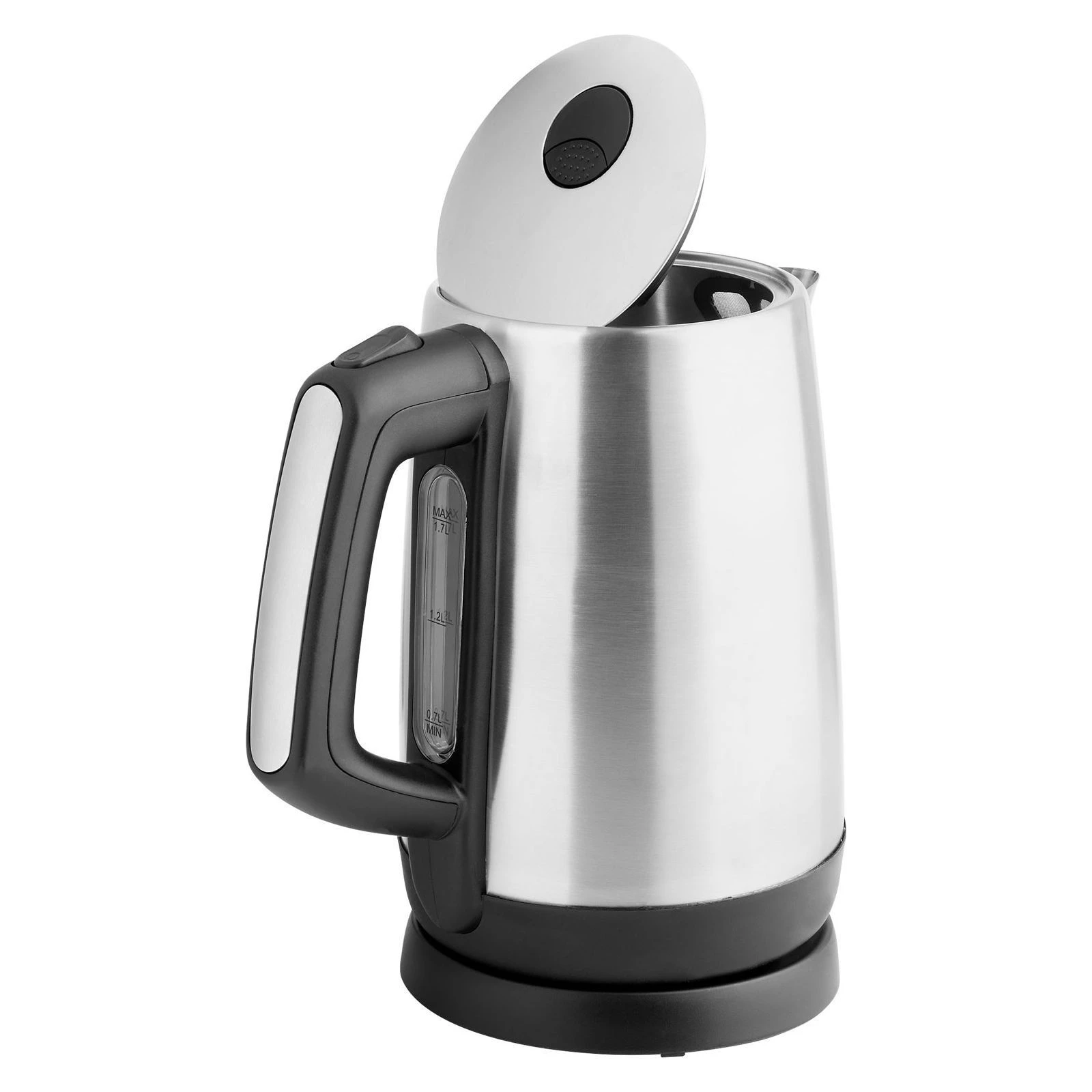 Тип: обычный; Объем: 1.7 л; Потребляемая мощность: 2200 Вт; Материал корпуса: нержавеющая сталь; Тип нагревательного элемента: скрытый (диск); Индикатор уровня воды: внешний; Фильтр от накипи: съемный; Крышка: несъемная; Вращение на 360°: есть; Защита: автоотключение при снятии с подставки, от включения без воды, от перегрева
