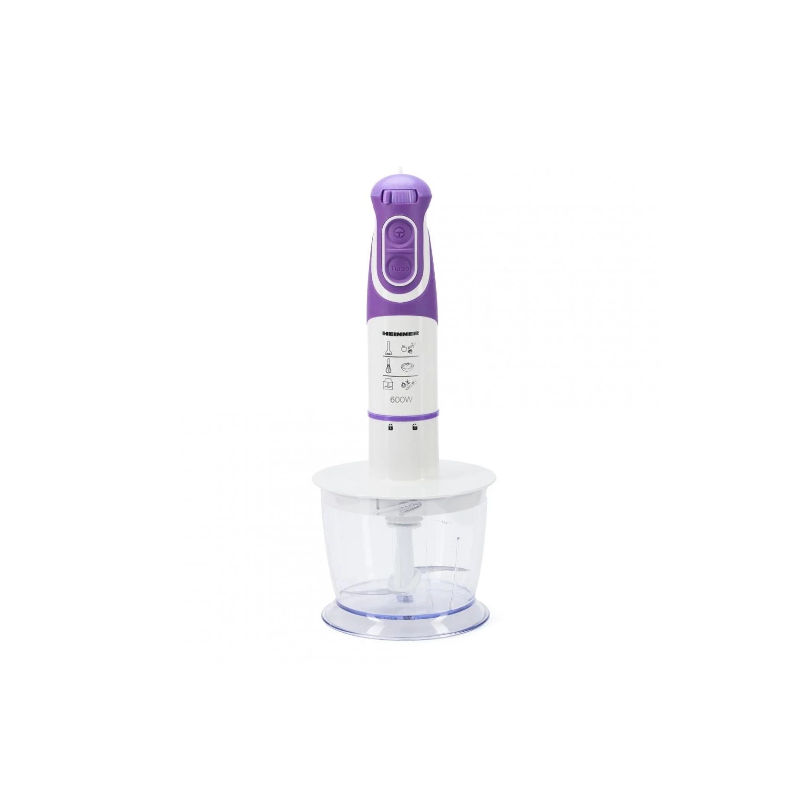 Тип: погружной; Мощность: 600 Вт; Емкость мерного стакана: 0.7 л; Измельчитель: с измельчителем; Емкость мини-измельчителя: 500 мл; Насадки и ножи: нож для измельчения, насадка-блендер; Дополнительные емкости: мерный стакан , чоппер; Количество скоростей: плавная регулировка; Материал ножки блендера: металл; Функции: турборежим, импульсный режим, колка льда