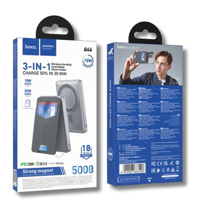 - Вы можете купить Мобильная батарея HOCO 5000mAh Title PD/20W Magnetic with stand + mini wallet Grey (Q46 / 714988) (UA) в кредит