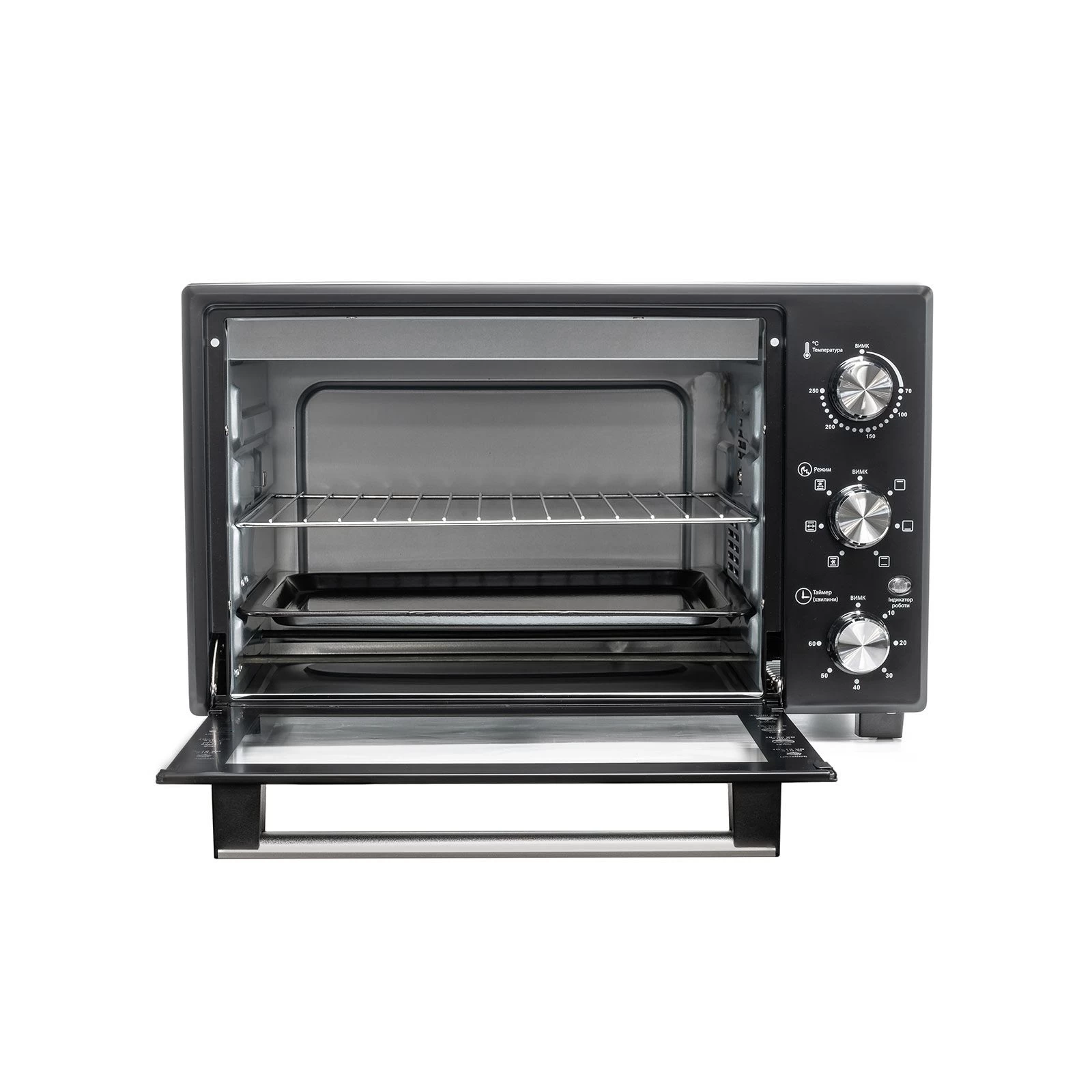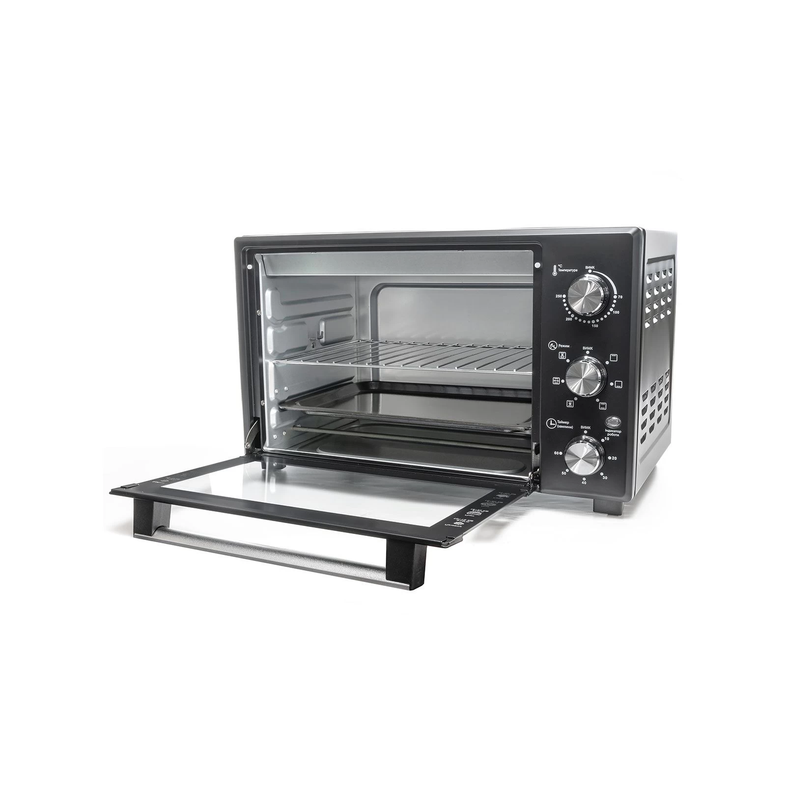 Мощность: 1600 Вт; Объем духовки: 25 л; Тип управления: механический; Количество нагревательных элементов: 2; Количество режимов нагрева: 3; Регулируемый термостат: до 230...