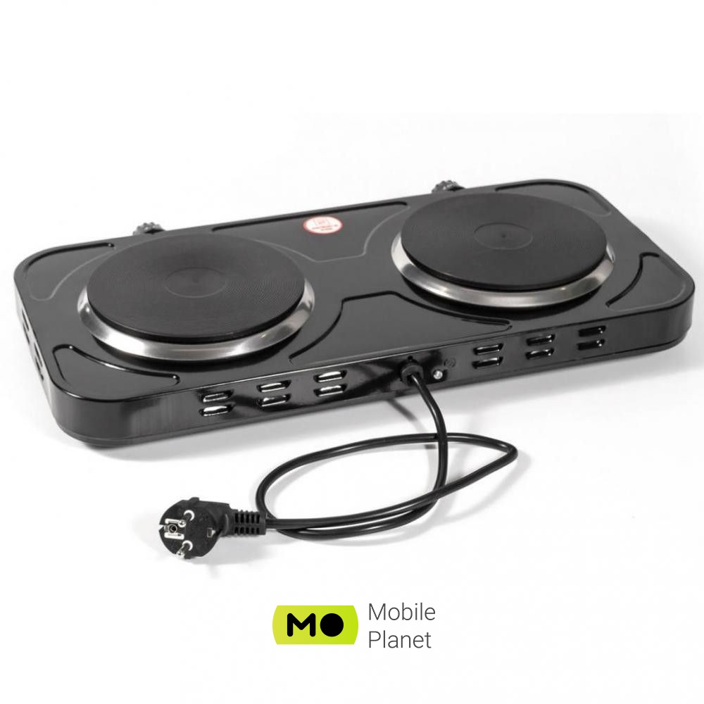 Тип варочной поверхности: электрическая; Управление: механическое; Мощность, кВт: 3; Блокировка панели управления: нет; Крышка: нет; Цвет: черный; Общее количество конфорок: 2; Количество электрических конфорок: 2; Мощность конфорок, кВт: 1; 2; Размер конфорок, мм: 2х155; Индикатор остаточного тепла: нет; Температура: 80-420°С