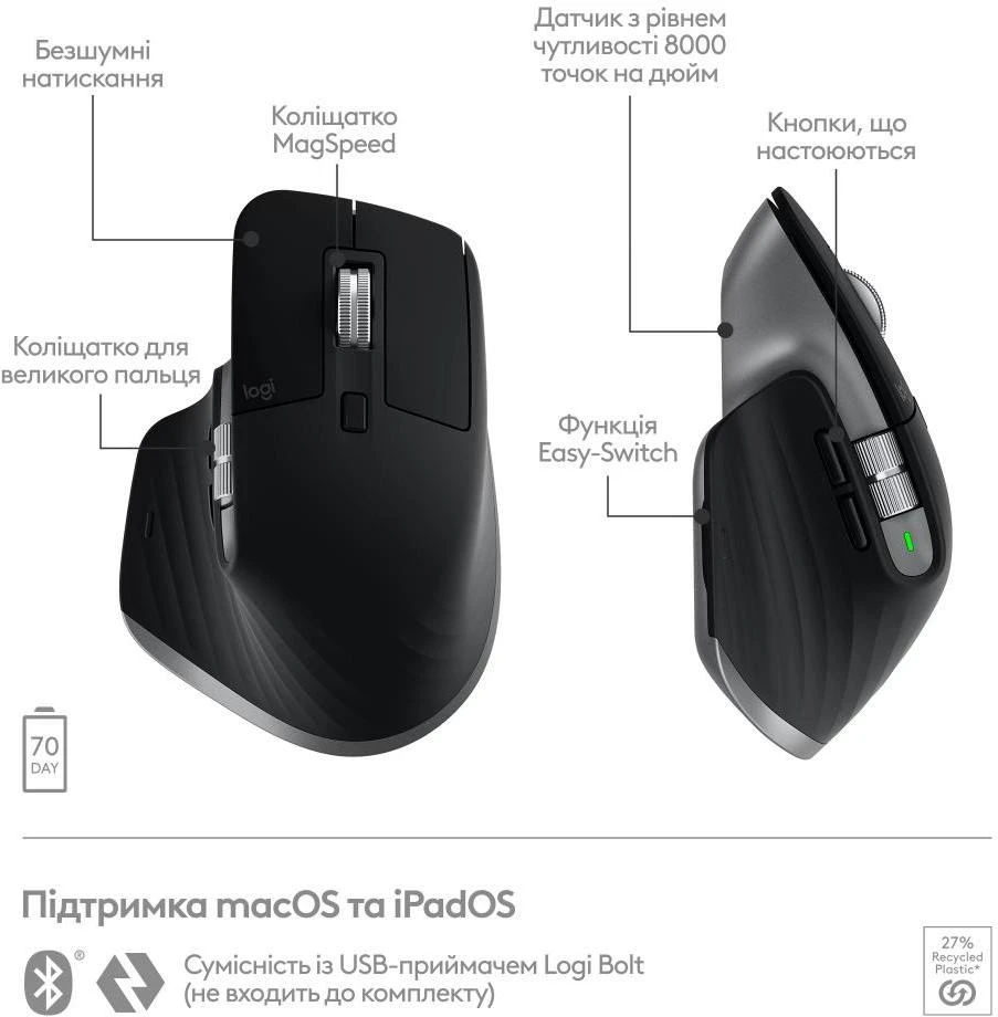Купить Мышь Logitech MX Master 3S For Mac Space Grey (910-006569, 910-006571)