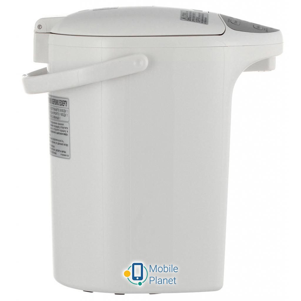 Тип: термопот; Объем: 4 л; Мощность: 700 Вт; Нагревательный элемент: скрытый (диск); Материал корпуса: пластик; Защита от перегрева: есть; Функции: поддержания температуры; Вес: 2.2 кг; Цвет: белый; Страна производства: Таиланд