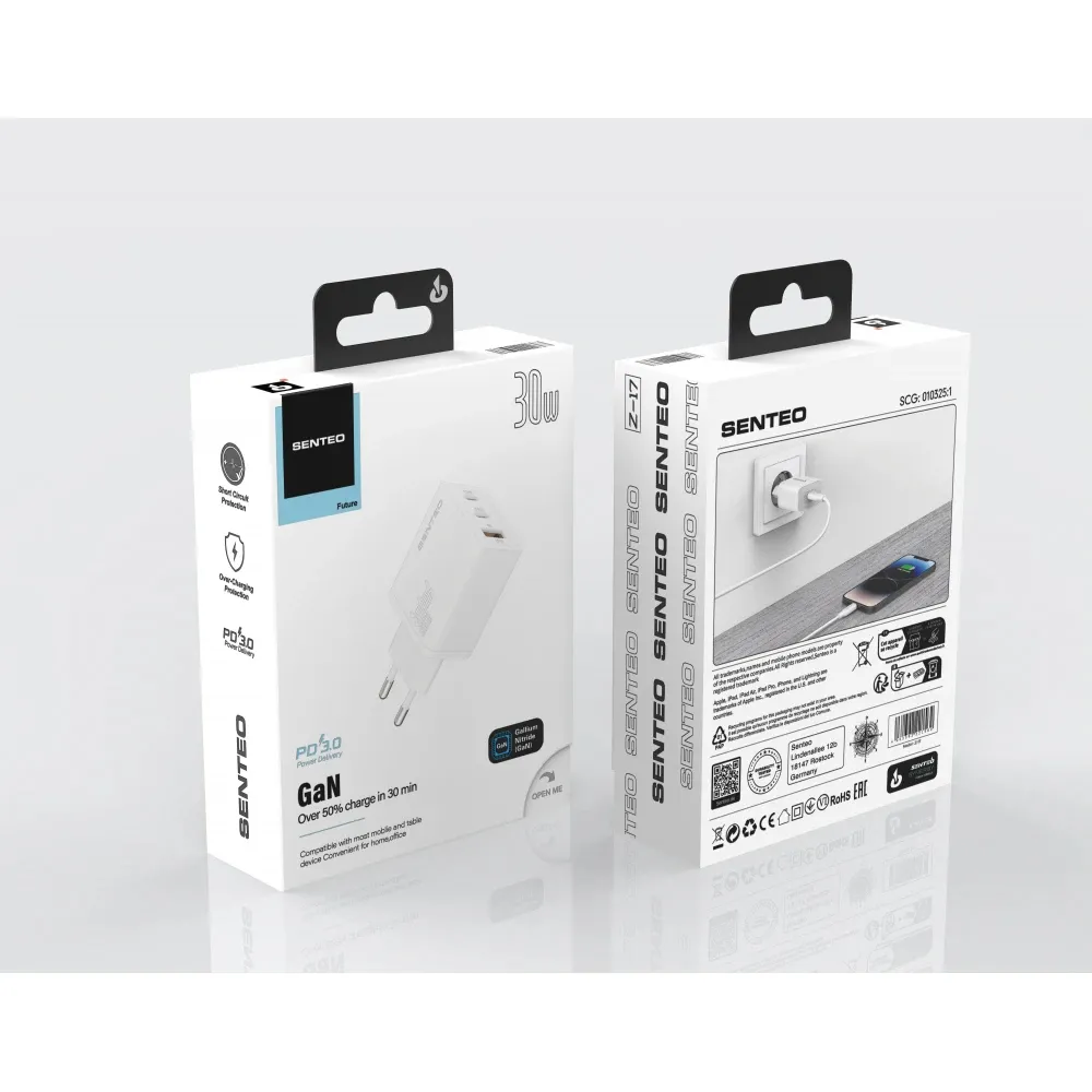 - Вы можете купить Сетевое зарядное устройство SENTEO Z-17 USB + 2USB-C 3A GaN PD 30W White в кредит