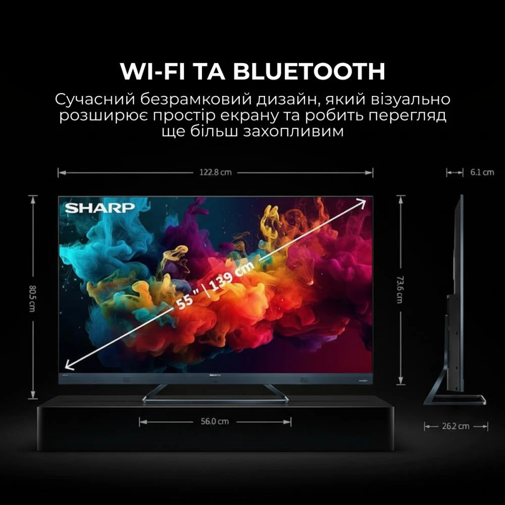 Бренд: Sharp; Диагональ, дюйм: 55; Разрешение, пиксели: 3840x2160; Частота, Гц: 60; Угол обзора, гор / верт: 178 / 178; Покрытие экрана: антибликовое; Поддержка HDR: HDR10, HLG, Dolby Vision; Тип...