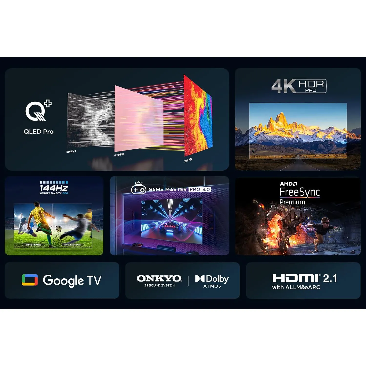 QLED-телевизор / Диагональ 85" / Экран не изогнут / Разрешение экрана: 3840x2160, UltraHD 4K / Smart TV: есть / Поддержка 3D: нет / Частота обновления: 144 Гц / Количество USB портов: 2 / ...