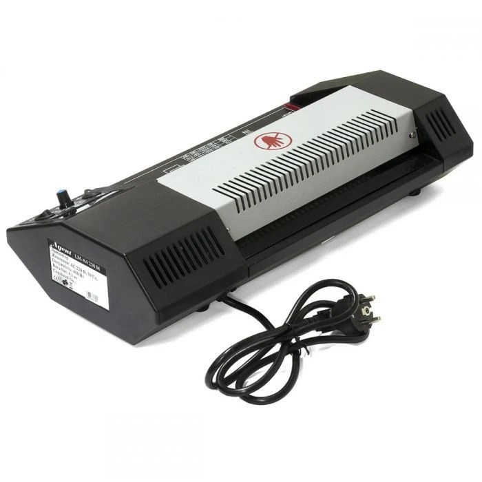 Тип: конвертний; Призначення: для офісу; Формат: A4; Живлення: 220~240 В; Максимальна ширина ламінування: 230 мм; Товщина плівки: 60 - 250 мкм; Швидкість ламінування: 410 мм/хв; Час готовності: 3~5 хв; Метод нагріву: зовнішній обігрів валів; Вибір температури: перемикач