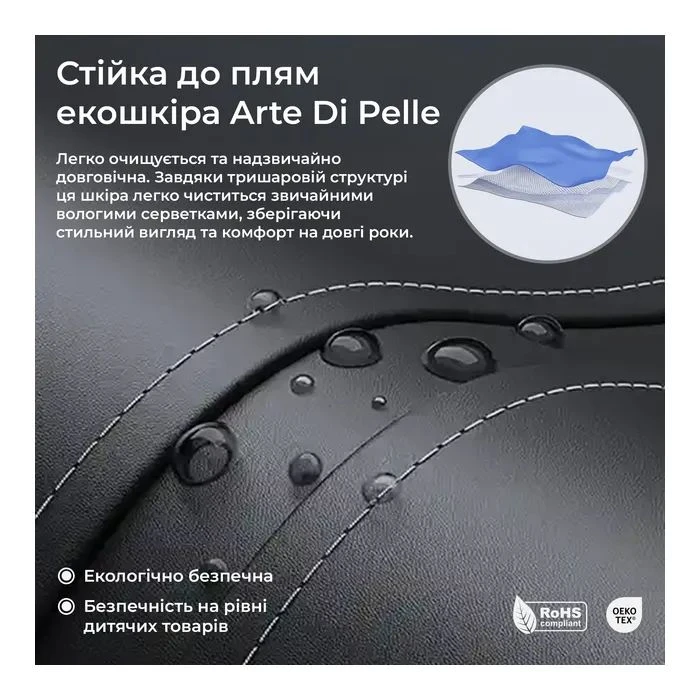 Матеріал рами: алюміній; Матеріал покриття: штучна шкіра; Налаштування підлокітників: є; Тип механізму: Multi-Functional Tilt, Multi-block, газ-лифт; Замок регулювання нахилу: є; Межа нахилу спинки: 135°; Налаштування пом'якшення попереку: є; Оснування: 5 ніжок з колесами; Матеріал роликів: прорезинені; Розмір сидіння: 54х51 см