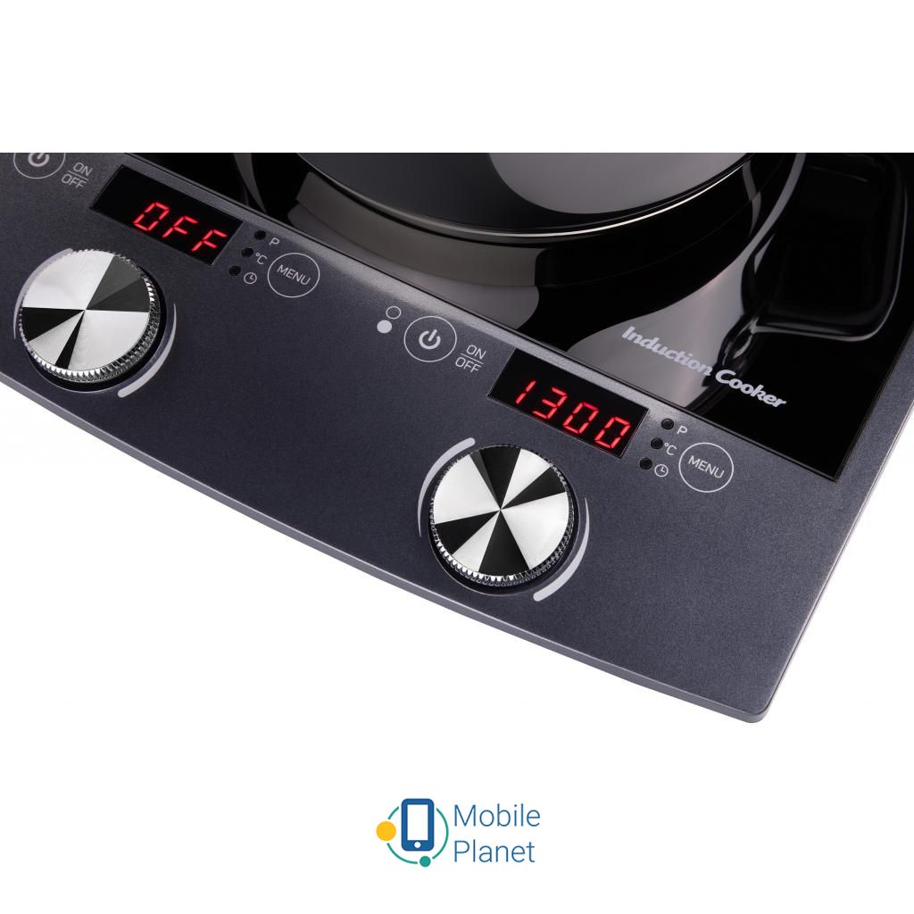 Тип варильної поверхні: індукційна, електрична; Тип управління: поворотні перемикачі, сенсорне; Кількість конфорок: 2; Вхідна потужність 1300 Вт, 1600 Вт; Напруга: 220 - 240 В; Особливості: дисплей, контроль температури, захист від перепадів напруги в електромережі, автоматичне відключення, тепловий запобіжник для захисту від перегріву пальника і внутрішньої частини ...