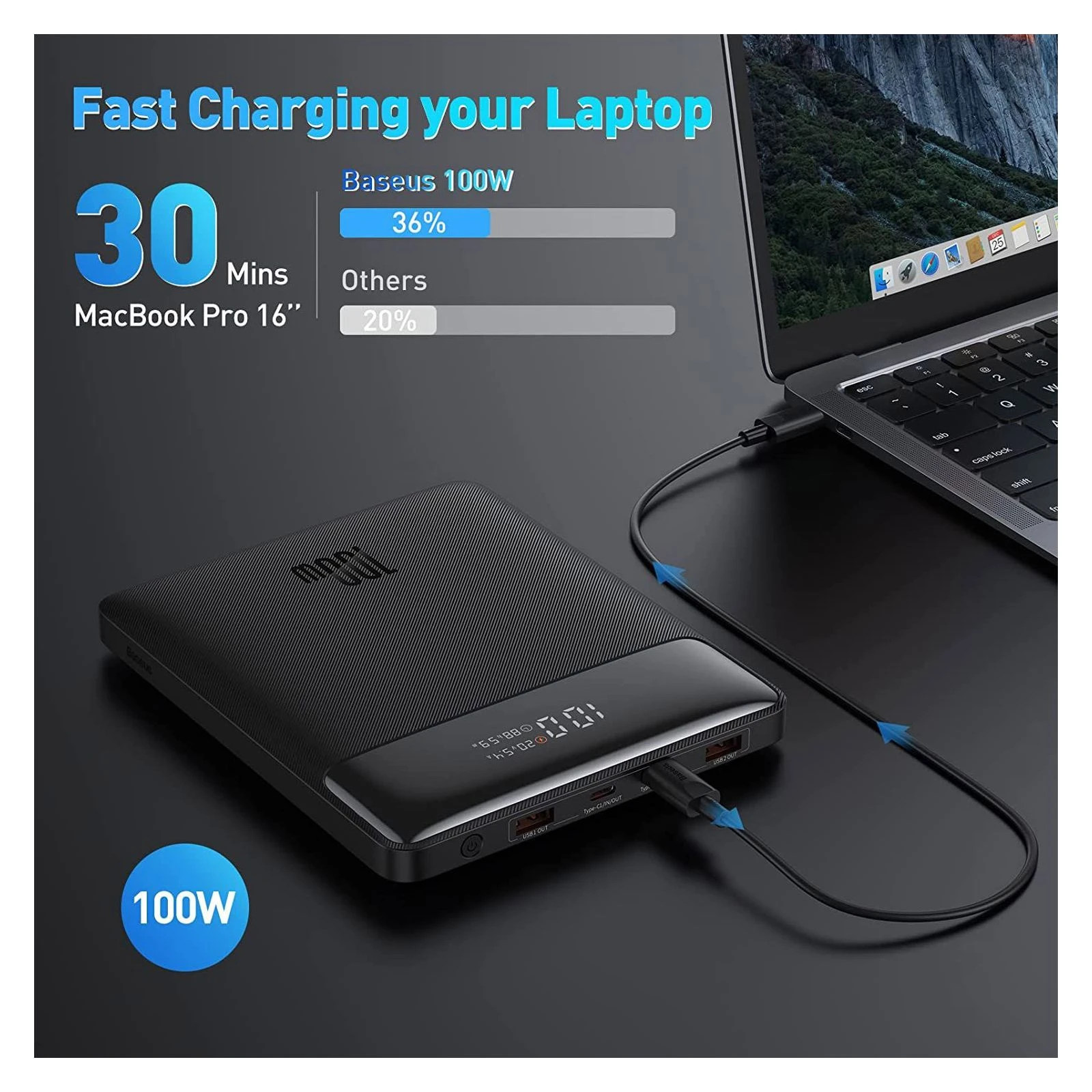 Мобільна батарея Baseus Blade Digital Display 20000mAh PD/100W, Black (PPDGL-01, PPBLD100-S) (PPBL000201) (UA)