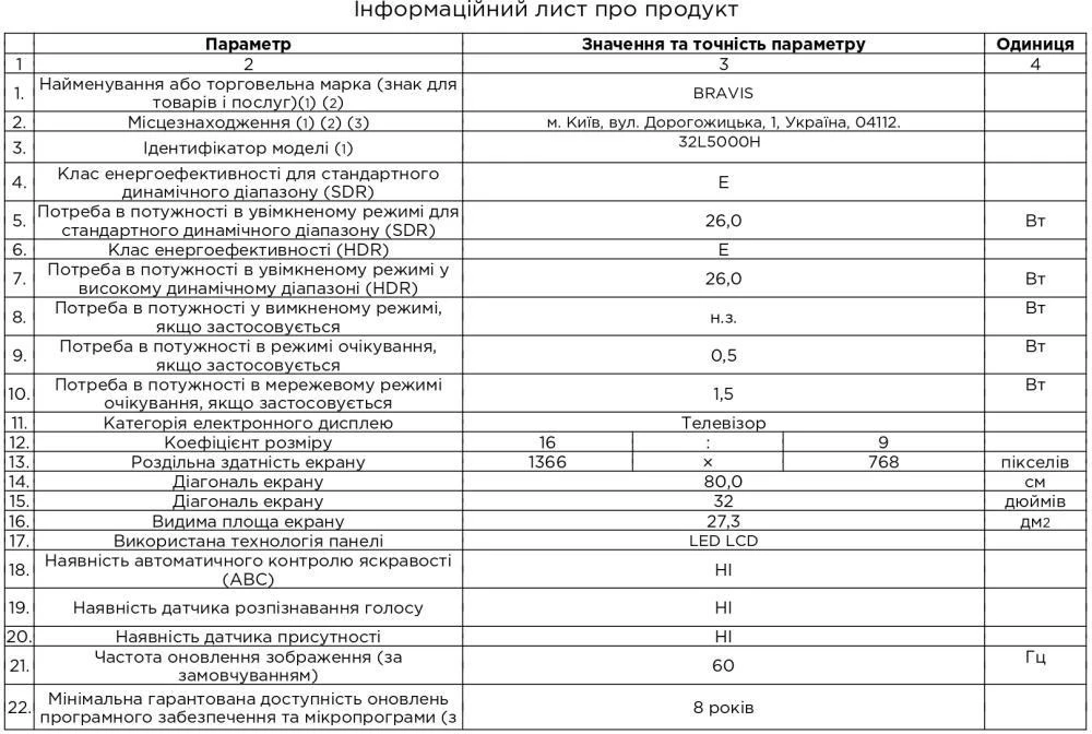 - Ви можете купити Телевізор Bravis 32L5000H (UA) в кредит