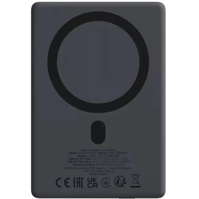 Мобільна батарея Canyon 5000mAh OnPower 500 PD20W Magnetic wireless MagSafe Black (CNS-CPB500B) (UA)