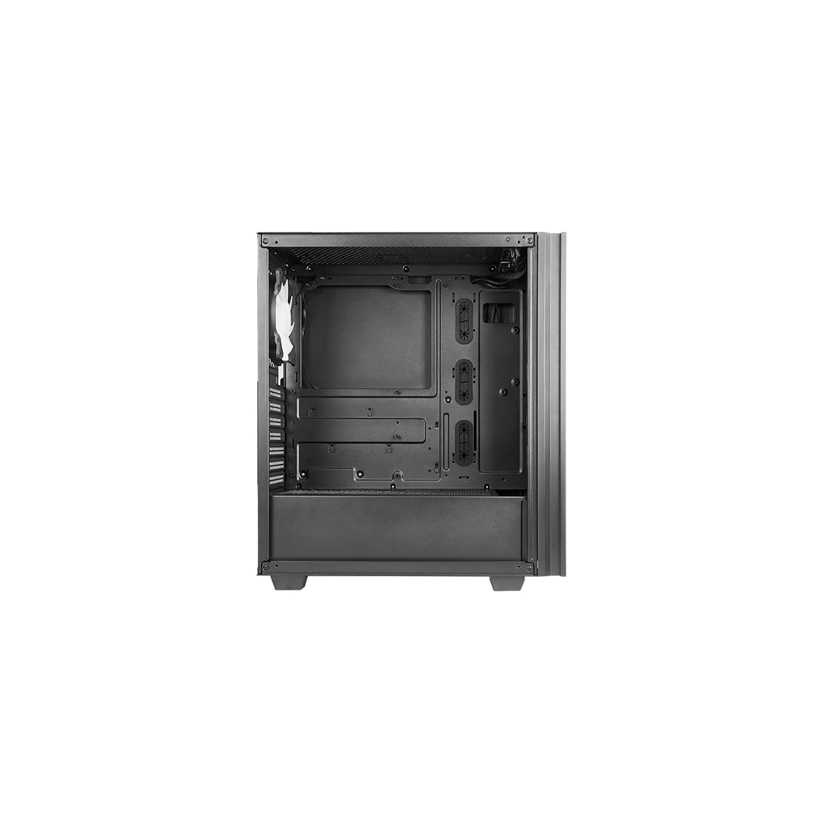Типорозмір: Miditower; Спосіб встановлення: вертикальний; Підтримувані материнські плати: ATX, Micro-ATX, Mini-ITX; Розташування блоку живлення: нижнє; Кількість внутрішніх відсіків 3.5": 2; Кількість слотів розширення: 7; Зовнішні роз'єми: 1 x USB 3.1, 1 x Microphone, 1 x Audio; Установка довгих відеокарт: 320 мм; пластик