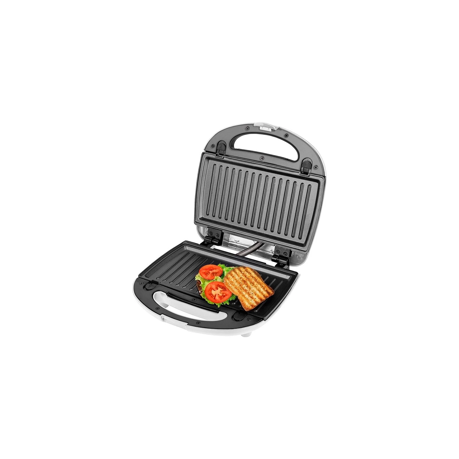 Потужність: 700 Вт; Кількість відділень: 1-2; Антипригарне покриття: є; Знімні форми: є; Ручка, що не нагрівається: є; Захист від перегріву: є; Індикатор нагріву: є; Індикатор: є; Додаткові функції: приготування вафель, паніні-гриль, приготування гриля, приготування сендвічів; Розміри: 230 х 222 х 95 мм