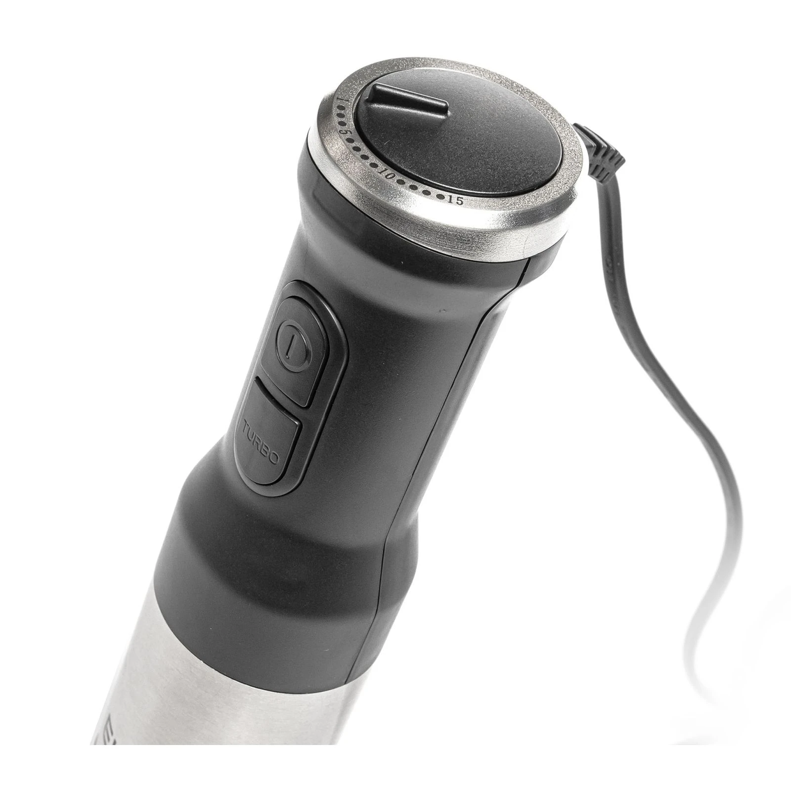 Тип: занурювальний; Потужність: 1200 Вт; Місткість мірної склянки: 0.8 л; Подрібнювач: з подрібнювачем; Місткість міні-подрібнювача: 650 мл; Насадки та ножі: насадка-блендер, ніж для подрібнення, насадка-віночок; Додаткові ємності: мірна склянка, чоппер; Кількість швидкостей: плавне регулювання; Матеріал ніжки блендера: метал; Функції: турборіжим