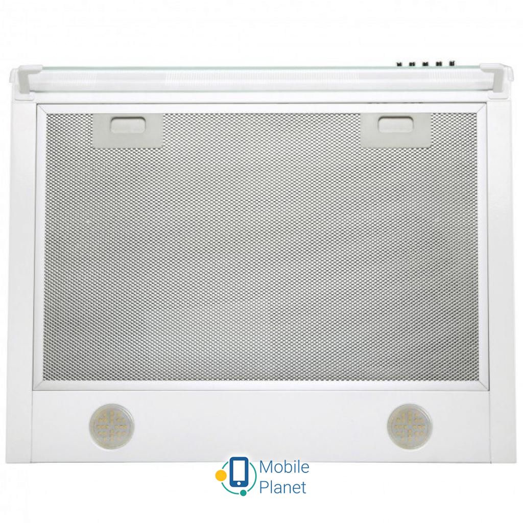 Фільтри: алюмінієвий; Тип: плоска; Ширина корпусу: 500 мм; Вага: 5.2 кг; Діаметр вентиляційної труби: 120 мм; Кількість швидкісних режимів: 3; Колір білий; Лампи: LED 2х3 Вт; Матеріал корпусу: фарбований метал, скло; Потужність: 220 Вт