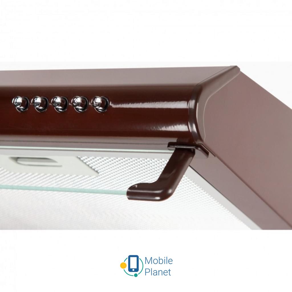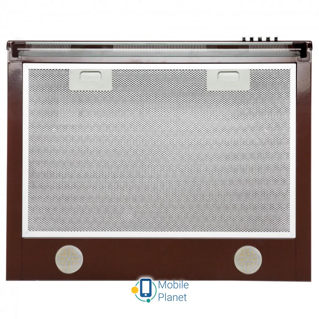 Фільтри: алюмінієвий; Тип: плоска; Ширина корпусу: 600 мм; Вага: 7.3 кг; Діаметр вентиляційної труби: 120 мм; Кількість швидкісних режимів: 3; Колір коричневий; Лампи: LED 2х3 Вт; Матеріал корпусу: метал; Продуктивність: 560 м3 / год