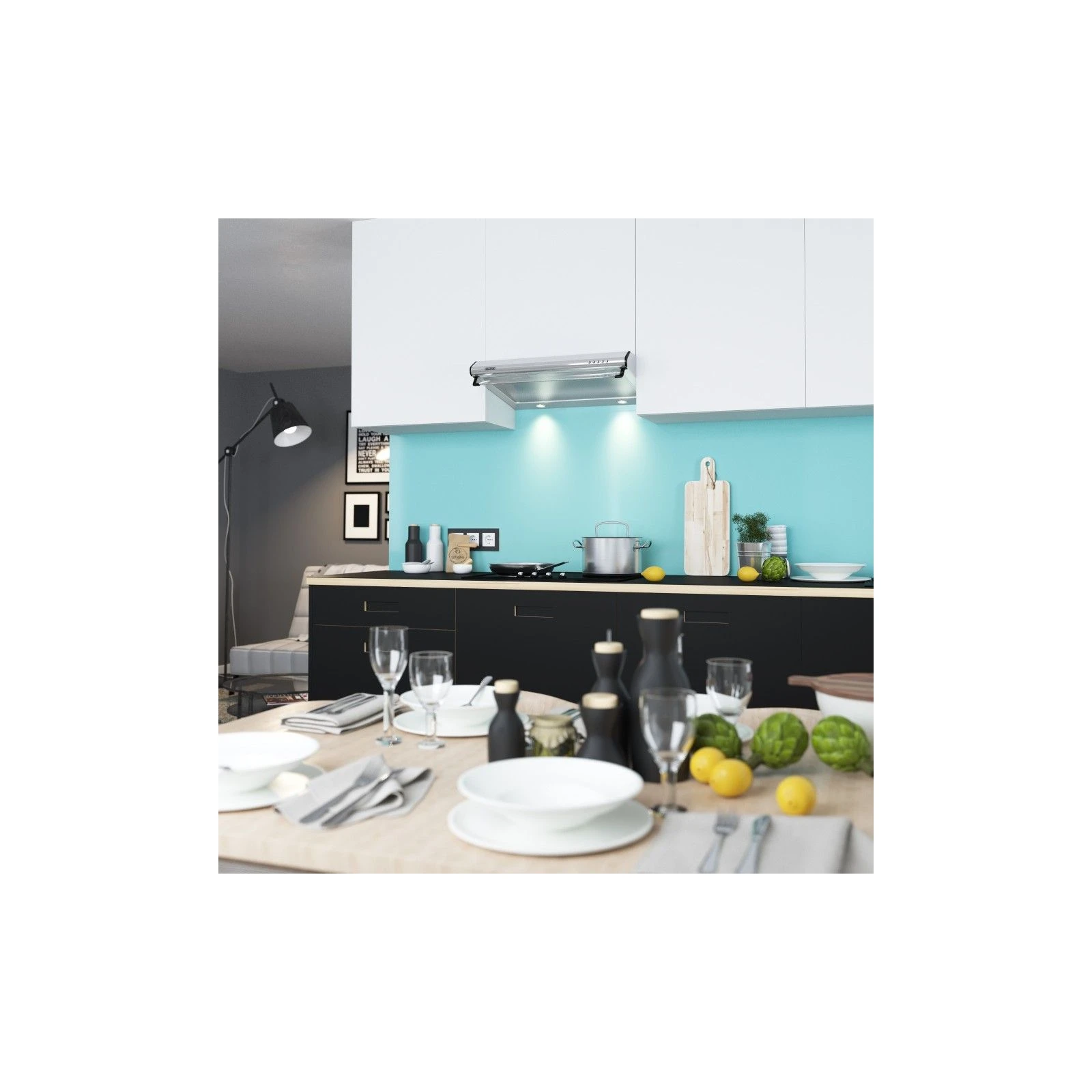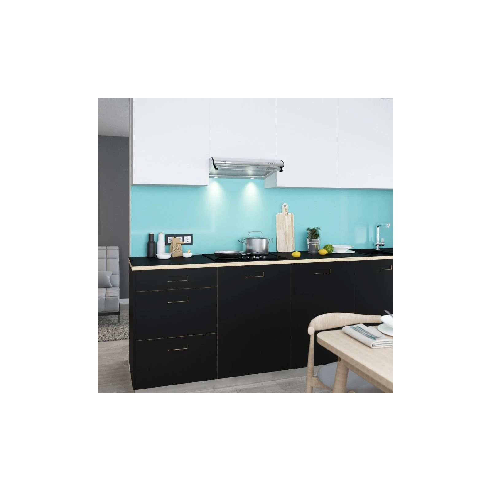 Тип: пласка; Продуктивність: 560 м3/год; Ширина корпусу: 60 см; Діаметр вентиляційної труби: 120 мм; Фільтри: алюмінієвий; Кількість швидкісних режимів: 3; Матеріал корпусу: метал; Лампи: LED 2х3 Вт; Рівень шуму: 49.9 дБ; Вага: 7.3 кг