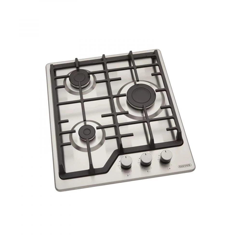 Бренд: Eleyus; Ширина, см: 44; Глибина, див: 51; Управління: механічне; Колір: нержавіюча сталь; Конструкція: незалежна; Кількість газових конфорок: 3; Специфічні конфорки: 1 економічна конфорка; Розмір конфорок, мм: 55; 75; 100; Потужність конфорок, кВт: 1; 1,7; 2,6