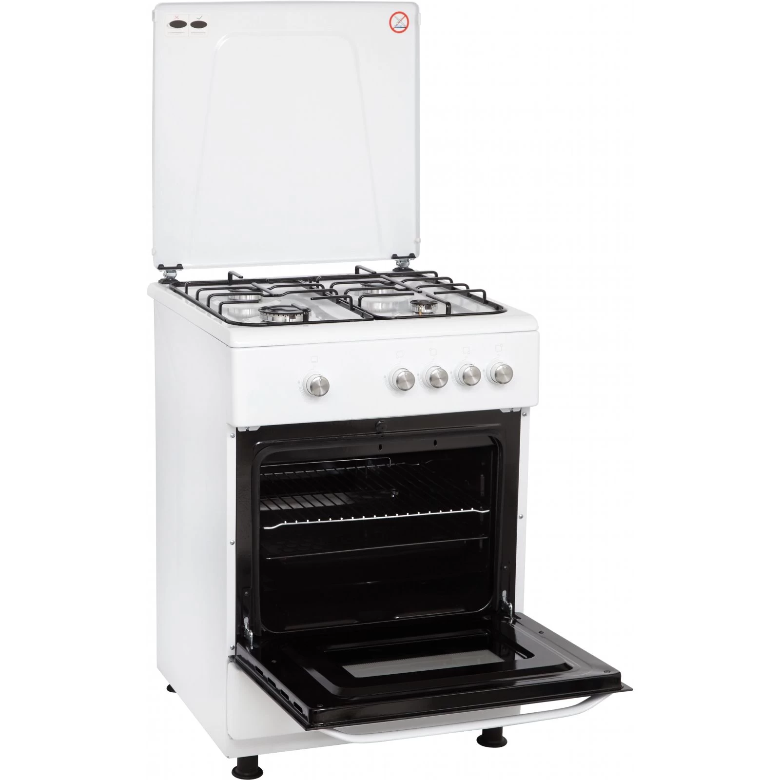 Тип: газова; Газ-контроль: поверхні, духовка; Клас енергоспоживання: А; Зони нагріву: газові; Кришка варильної поверхні: металева; Матеріал грат поверхні: емальована сталь; Кількість конфорок: 4; Потужність і тип конфорок: права нижня: потужністю 2.5 квт, діаметром 10 см, права верхня: потужністю 0.9 квт, діаметром 5.3 см, ліва нижня: потужністю 1.7 квт,...