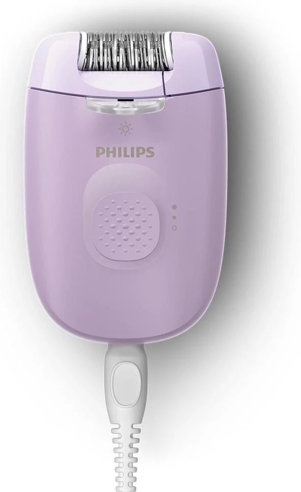 Бренд: Philips; Кількість швидкостей епіляції (ступенів інтенсивності): 2; Система живлення: електромережа; Колір: фіолетовий; бритвена голівка: є; для чутливих ділянок тіла: є; масажна насадка: є