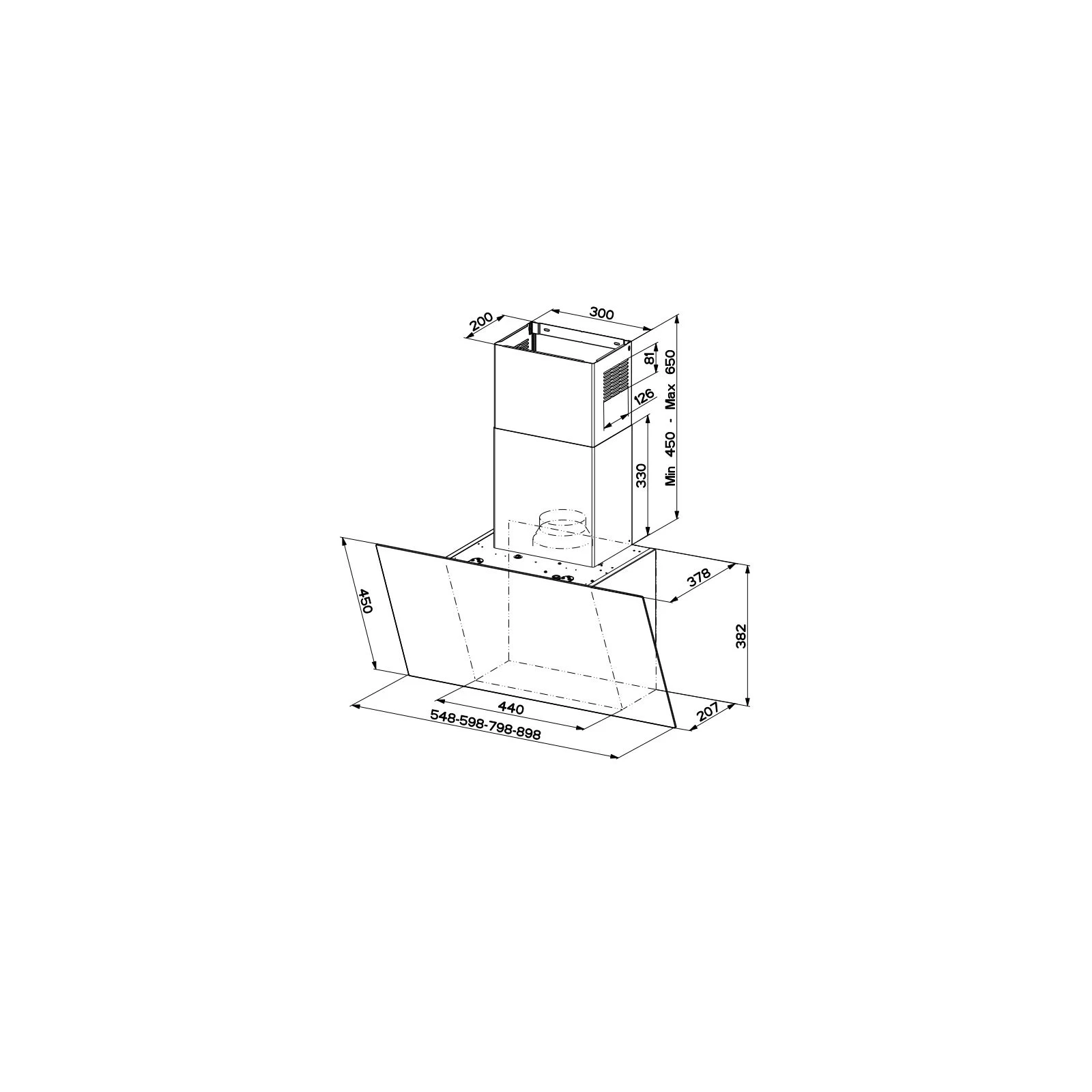 Тип: похила; Тип монтажу: настінна; Продуктивність: 1440 м3/год; Потужність: 230 Вт; Режим роботи: відведення повітря та рециркуляція; Ширина корпусу: 80 см; Діаметр вентиляційної труби: 150 мм; Фільтри: алюмінієвий; Тип керування: сенсорне; Кількість швидкісних режимів: 3