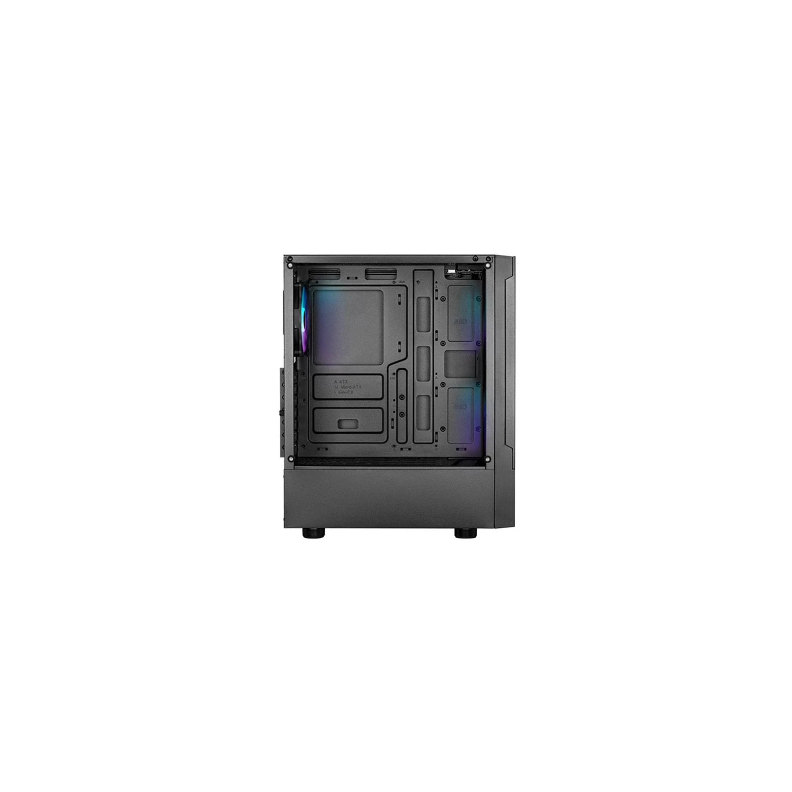 Клас корпусу: Геймерські; Типорозмір: Miditower; Спосіб встановлення: вертикальний; Підтримувані материнські плати: ATX, Micro-ATX, Mini-ITX; Наявність блоку живлення без блоку живлення; Розташування блоку живлення: нижнє; Кількість зовнішніх відсіків 5.25”: відсутня; Кількість зовнішніх відсіків 3.5": відсутня; Кількість внутрішніх відсіків 3.5": 2; Кількість внутрішніх відсіків 2.5": 2 (1 у відсік 3.5")