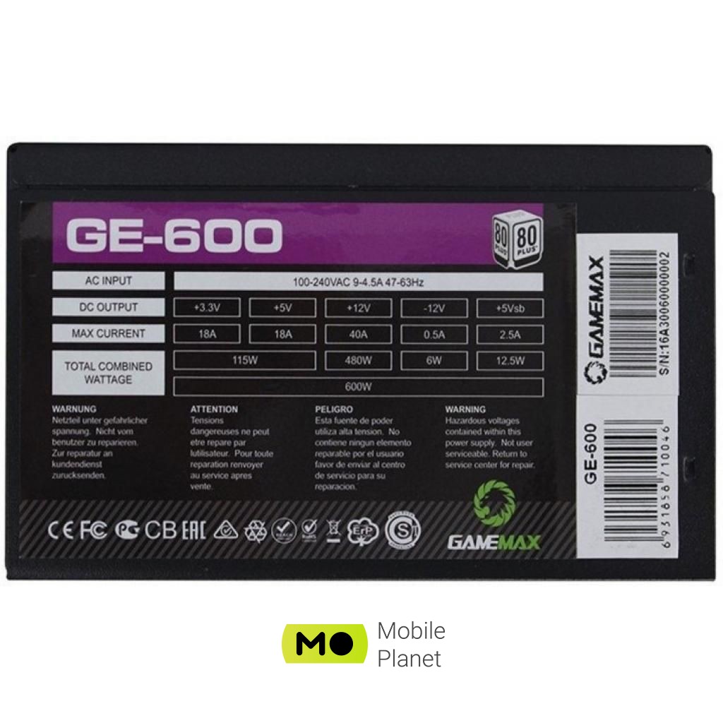 Купити Блок живлення GAMEMAX 600W (GE-600) (UA)