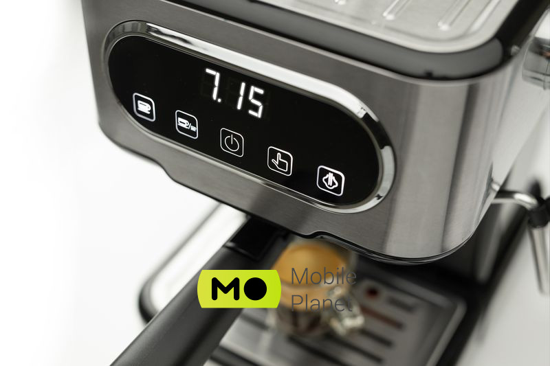 Тип: ріжкова еспресо; Тип управління: механічний; Тип установки: настільна; Використовувана кава: мелений; Потужність: 1100 Вт; Тиск: 15 бар; Колір: нержавіюча сталь; Матеріал корпусу: нержавіюча сталь; Вага: 3.6 кг; Ширина: 320 мм