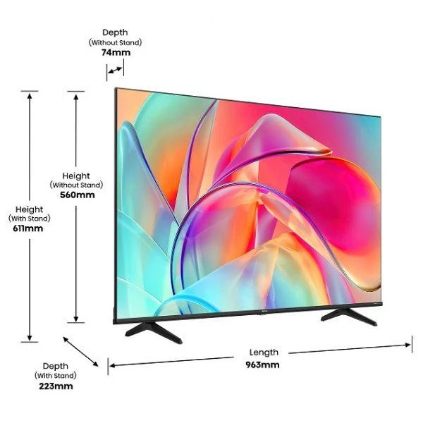 Бренд: Hisense; Діагональ, дюйм: 43; Роздільна здатність, пікселі: 3840x2160; Частота, Гц: 60; Кут огляду, гор/верт: 178/178; Час реакції, мс: 10; Яскравість, кд/м2: 250; Контрастність: 3800:1; Покриття: антивідблиск; HDR підтримка: + (HDR10+, Dolby Vision, HLG)