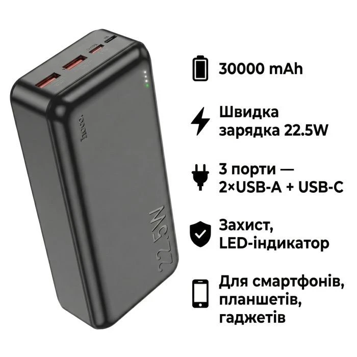 Купити Мобільна батарея HOCO 30000mAh Astute 22.5W PD QC Black (J101B / 714732) (UA)