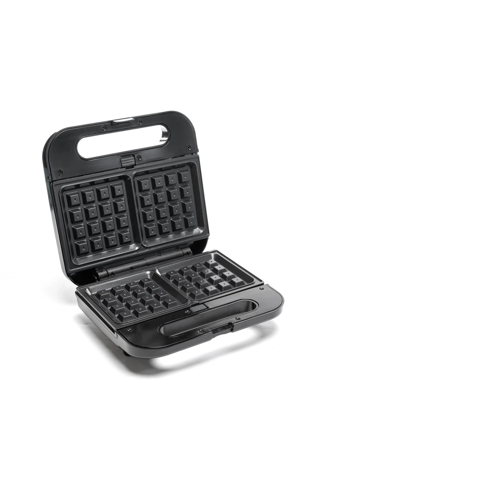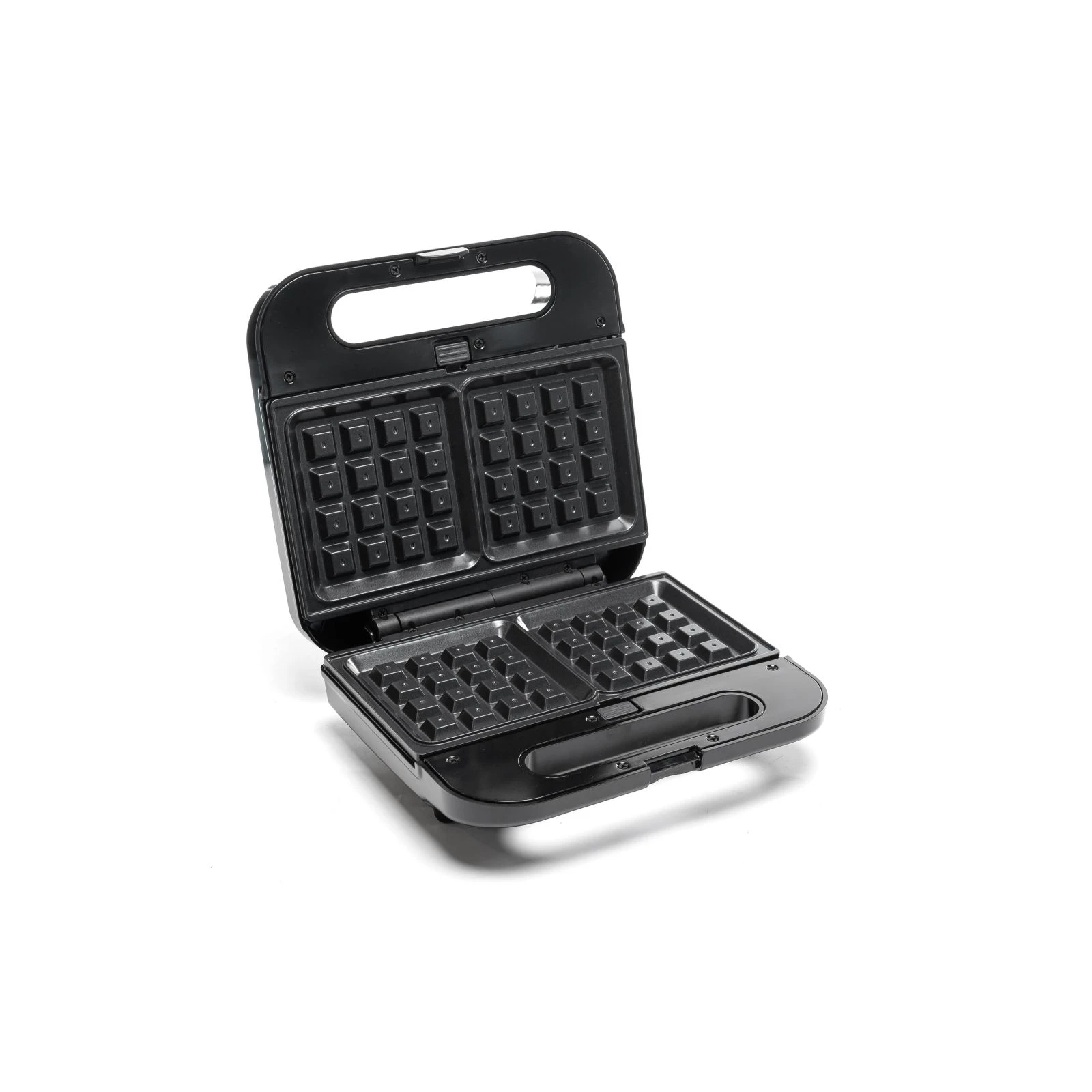 Потужність: 800 Вт; Кількість відділень: 1-4; Антипригарне покриття: є; Знімні форми: є; Ручка, що не нагрівається: є; Захист від перегріву: є; Індикатор нагріву: є; Індикатор: є; Додаткові функції: приготування вафель, паніні-гриль, приготування гриля, приготування сендвічів; Колір чорний