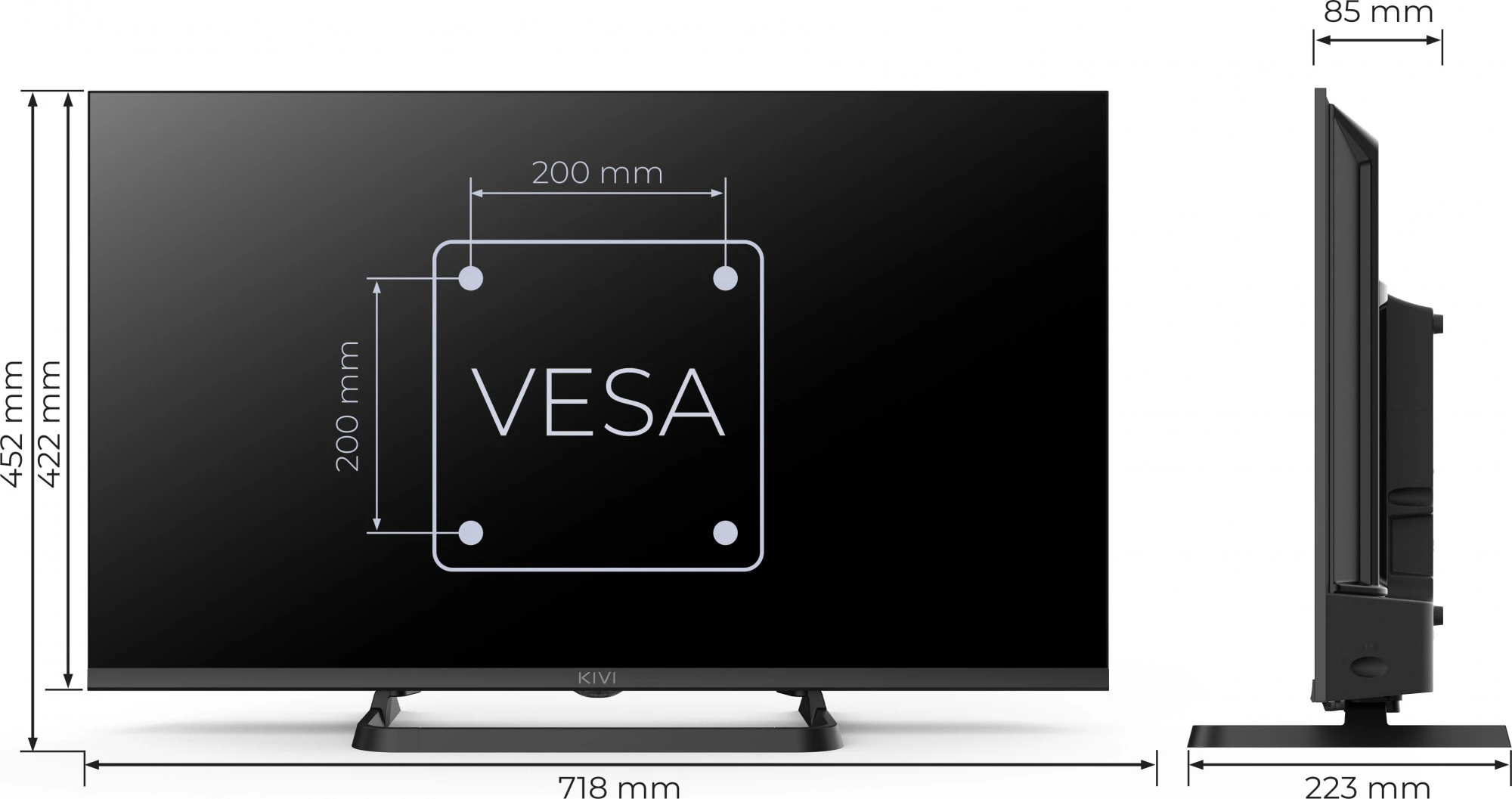 Бренд: KIVI; Діагональ, дюйм: 32; Роздільна здатність, пікселі: 1366x768; Тип матриці: ADS; Частота, Гц: 60; Кут огляду, гор/верт: 178/178; Контрастність: 1700:1; Покриття: антивідблиск; Підтримка HDR: є; Тип підсвічування: Direct LED