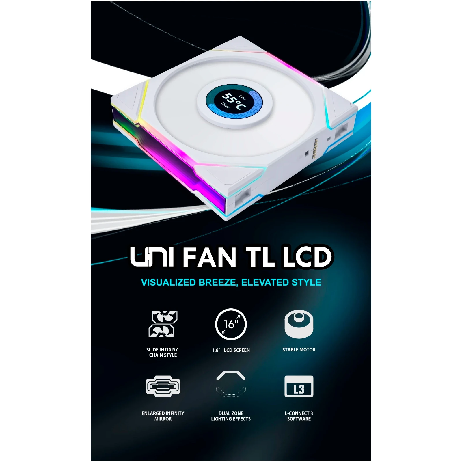 Кулер для корпусу Lian Li TLLCD 120-1, White Cooler (G99.12TLLCD1W.00) (UA)