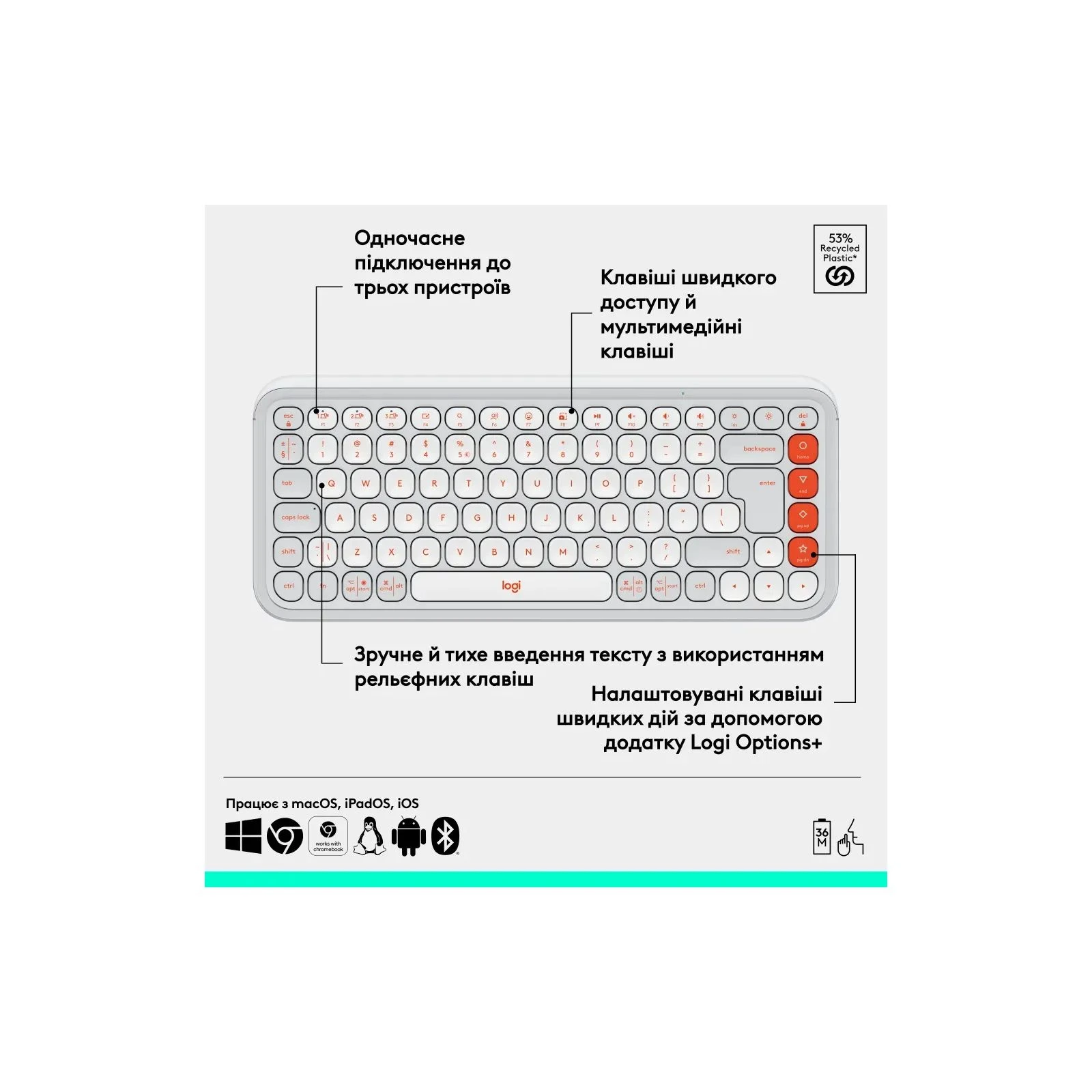 - Ви можете купити Клавіатура Logitech POP Icon Keys Bluetooth UA Off-White (920-013072) (UA) в кредит