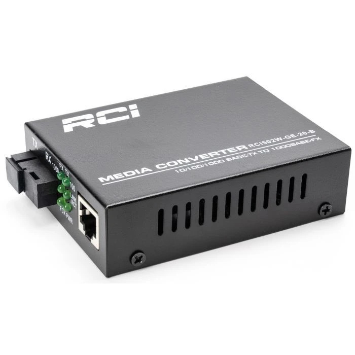 Купити Медіаконвертор RCI 1G, 20km, SC, RJ45, Tx 1550nm standart size metal case (RCI502W-GE-20-B) (UA)