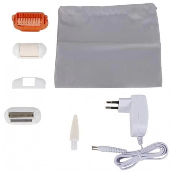 Бренд: Rowenta; Кількість пінцетів (дисків), шт.: 24; Кількість швидкостей епіляції (ступеня інтенсивності): 2; Система живлення: електромережа; Колір: білий/бежевий; голівка для гоління: є; для чутливих ділянок тіла: є; для точкового видалення волосся: ні; для видалення волосся на обличчі: ні; щітка для очищення обличчя: ні