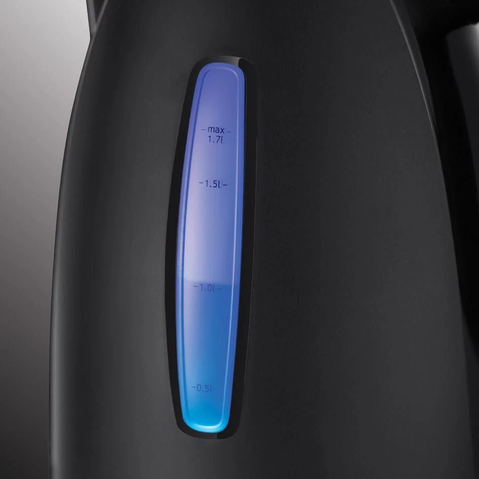 Бренд: Russell Hobbs; Потужність, Вт: 2400; Об'єм, л: 1,7; Тип нагрівального елемента: дисковий (прихований); Матеріал корпусу: пластик; Колір чорний; Фільтр від накипу: є; Індикатор рівня води: є; Індикатор увімкнення: є; Автоматичне відключення під час закипання: є
