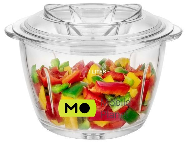 Тип: Подрібнювач; Потужність, Вт: 800; Регулювання швидкості: Немає; Кількість швидкостей: 1; Насадки: Подрібнювач; Обсяг чаші, л: 1; Харчування: Від мережі; Колір: Сріблястий, білий