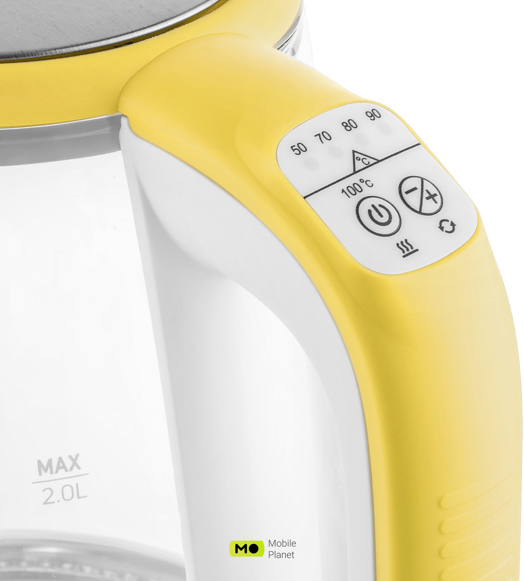 Колір жовтий; Тип: електрочайник; Обсяг: 2 л; Споживана потужність 2200 Вт; Нагрівальний елемент: прихований; Покриття нагрівального елементу: нержавіюча сталь; Індикатор рівня води: є; Терморегулятор: є; Регулювання температури: 50, 70, 80, 90, 100 ° C; Підтримка t ° (чайник): є / 30 хвилин /