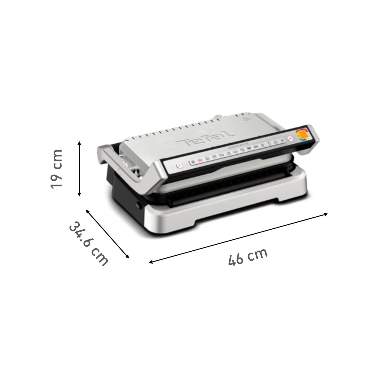 Тип керування: електронний; Розміщення: настільний; Потужність: 2200 Вт; Поверхня: ребриста; Антипригарне покриття: є; Піддон для збирання соку/рефлектор: є; Температурні режими: 4; Ширина грат-гриль: 40 см; Розміри: 46 x 34,6 x 19 см; Довжина грати-гриль: 20 см