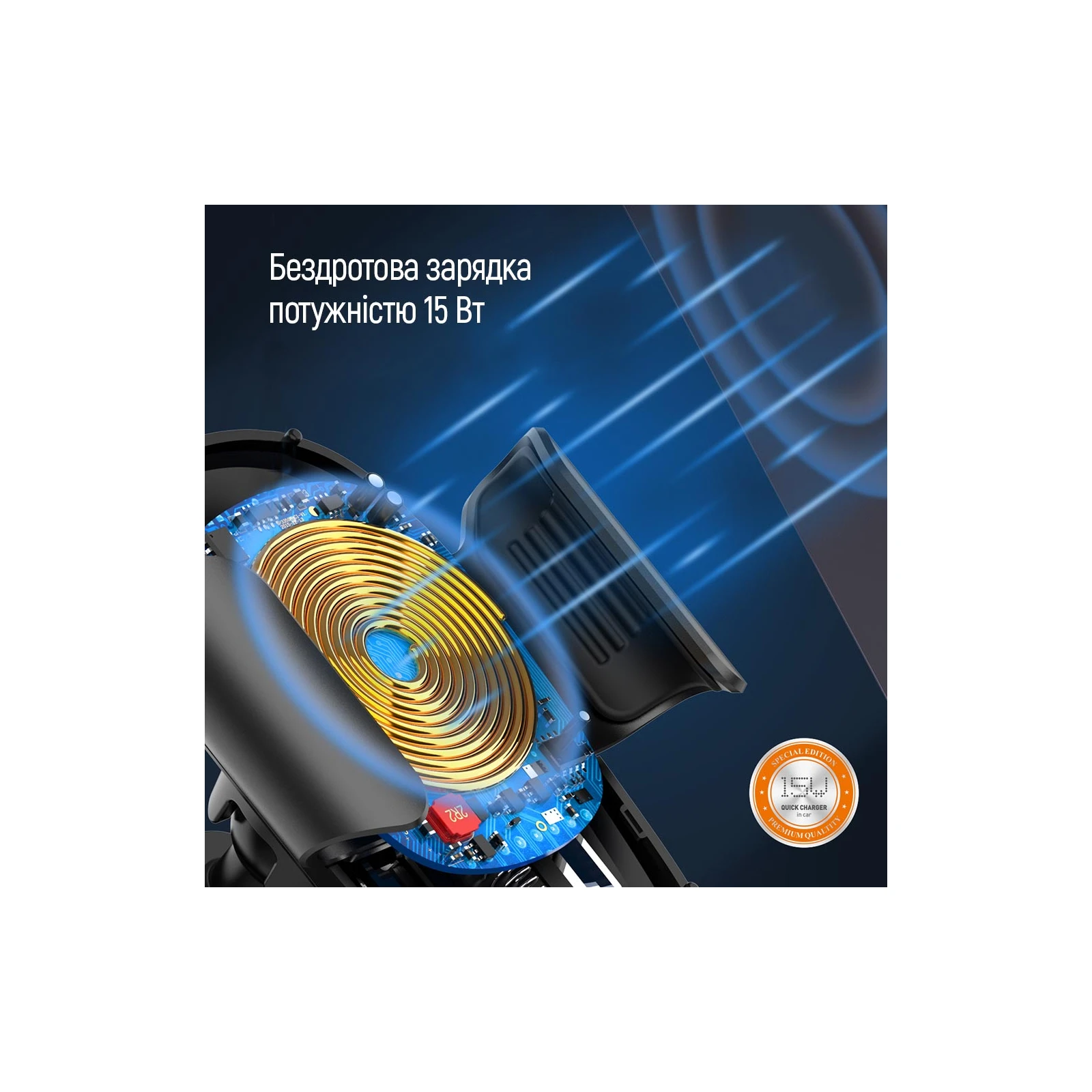 Універсальний автотримач ColorWay Dashboard Car Wireless Charger 15W Black (CW-CHAW037Q-BK) (UA)