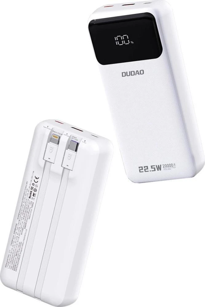 Мобільна батарея Зовнішній акумулятор Dudao K15Pro 20000mAh 22.5W Білий (6977196682447) (UA)