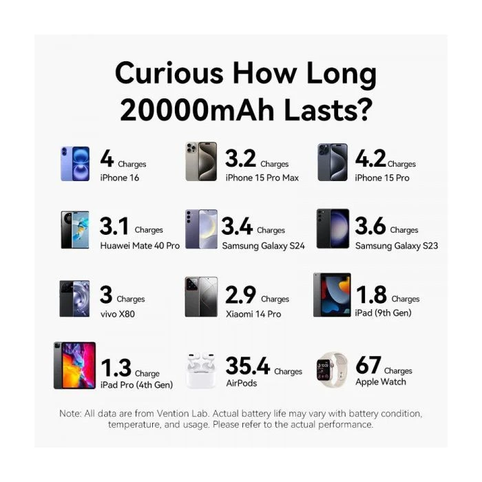 - Вы можете купить Мобильная батарея Vention 20000mAh 22,5W Fast Charging, with built-in USB-C cable, Black (FKBB0-C) (UA) в кредит