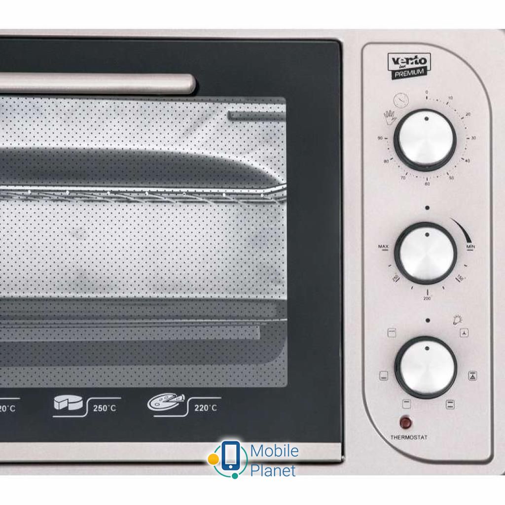 Мощность: 1500 Вт; Объем духовки: 45 л; Тип управления: механический; Количество режимов нагрева: 6; Режимы: выпечка, запекание, размораживание; Регулируемый термостат: до 250 °С; Особенности: таймер, автоотключение, звуковой сигнал, подсветка; Размеры: 60.8 х 34 х 46 см; Вес: 15 кг; Цвет: серебристо - черный