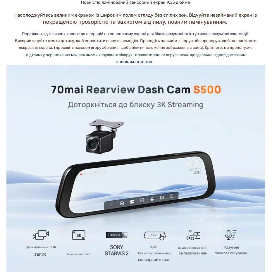 - Вы можете купить Видеорегистратор-зеркало 70mai Rearview Dash Cam S500 в кредит