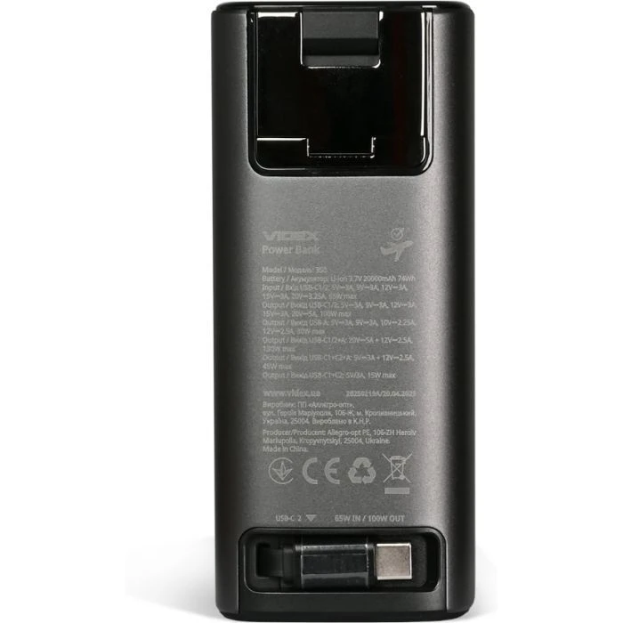 - Вы можете купить Мобильная батарея Videx 20000mAh 130W PD/100W TFT LCD Display (VPB-350-G) (UA) в кредит